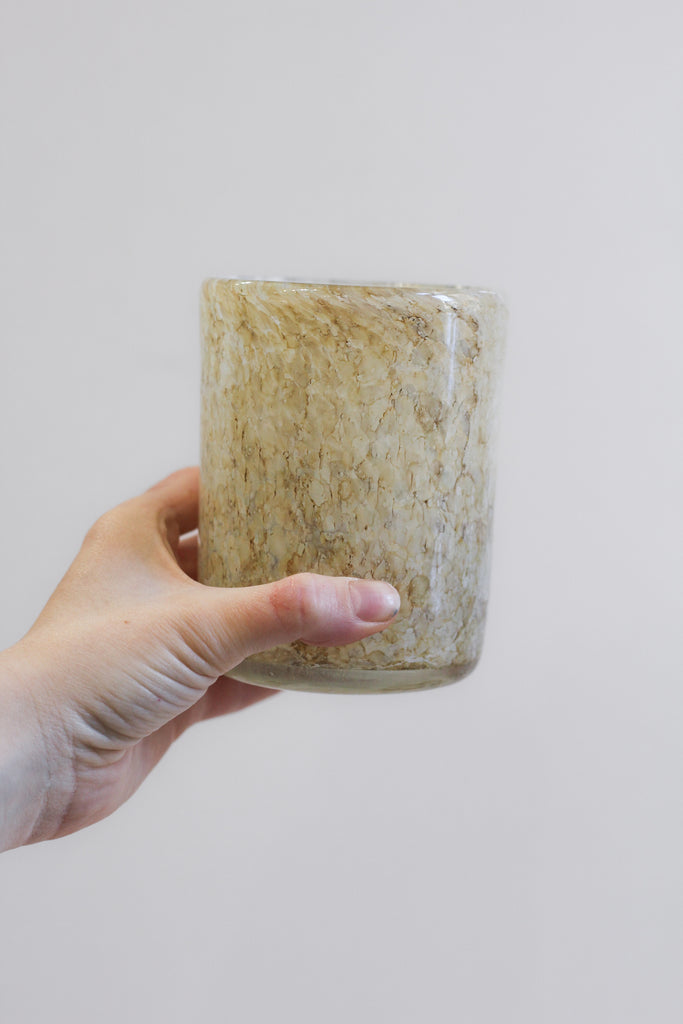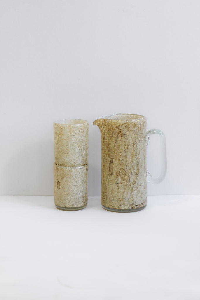 Склянки з гутного скла з колекція «Спокій» натхненна старими львівськими підʼїздами з мармуровою підлогою, яку нагадує фактура виробів. Але це не лише про матеріал, а й про бажання відтворити дух спокою та сповільнення, що наповнюють такі будинки. Про недільні ліниві ранки, залиті сонцем дворики, напівсонний темп міста й пізній сніданок.