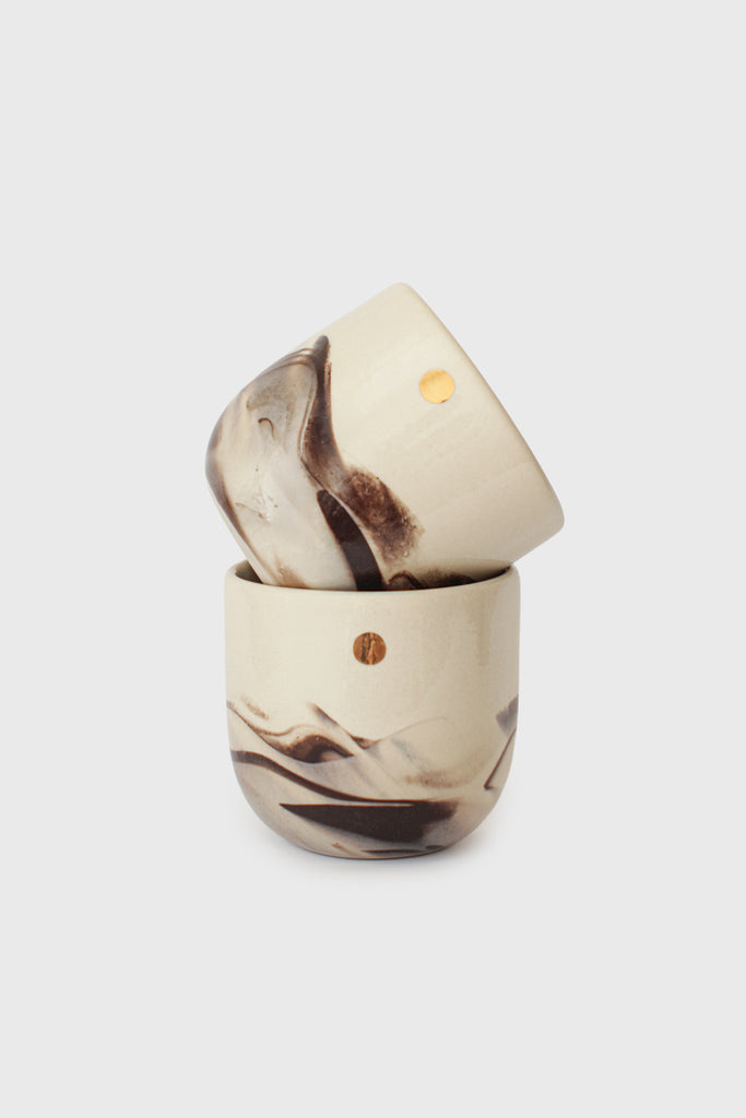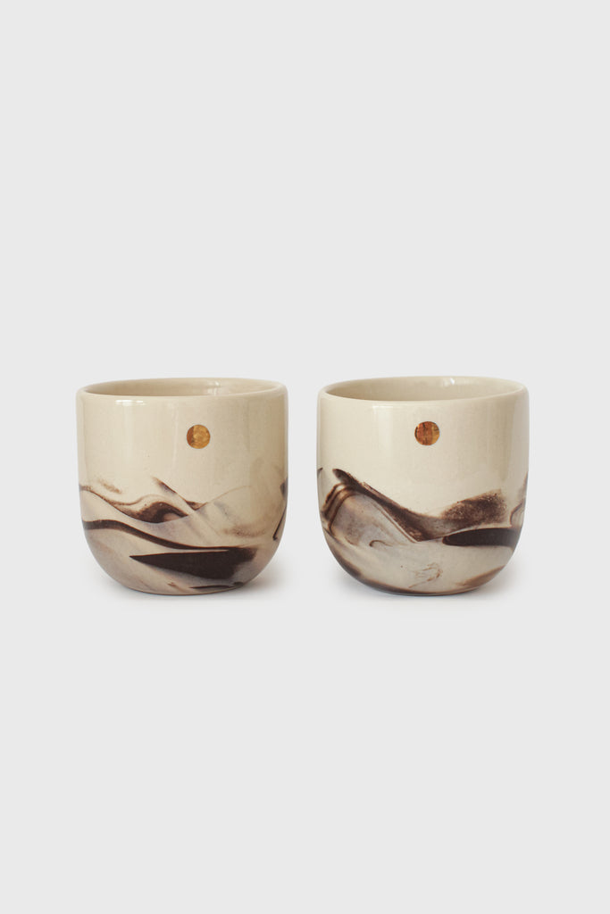 Стакан бежевий з мотивами монохромного коричневого пейзажу. Розроблений для подачі щоденних напоїв. Посуд виготовлений з міцного матеріалу - порцеляни. Має сонце, розписане справжнім золотом.