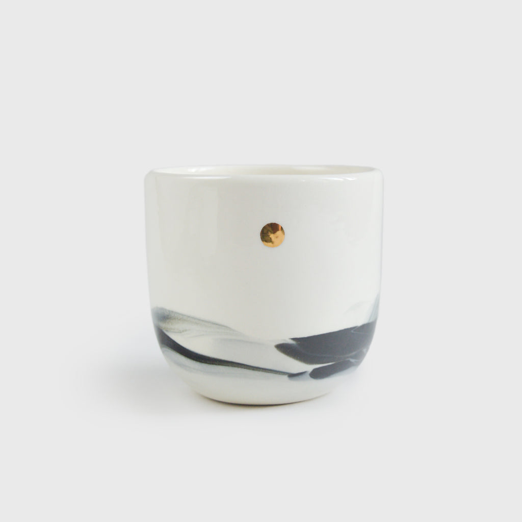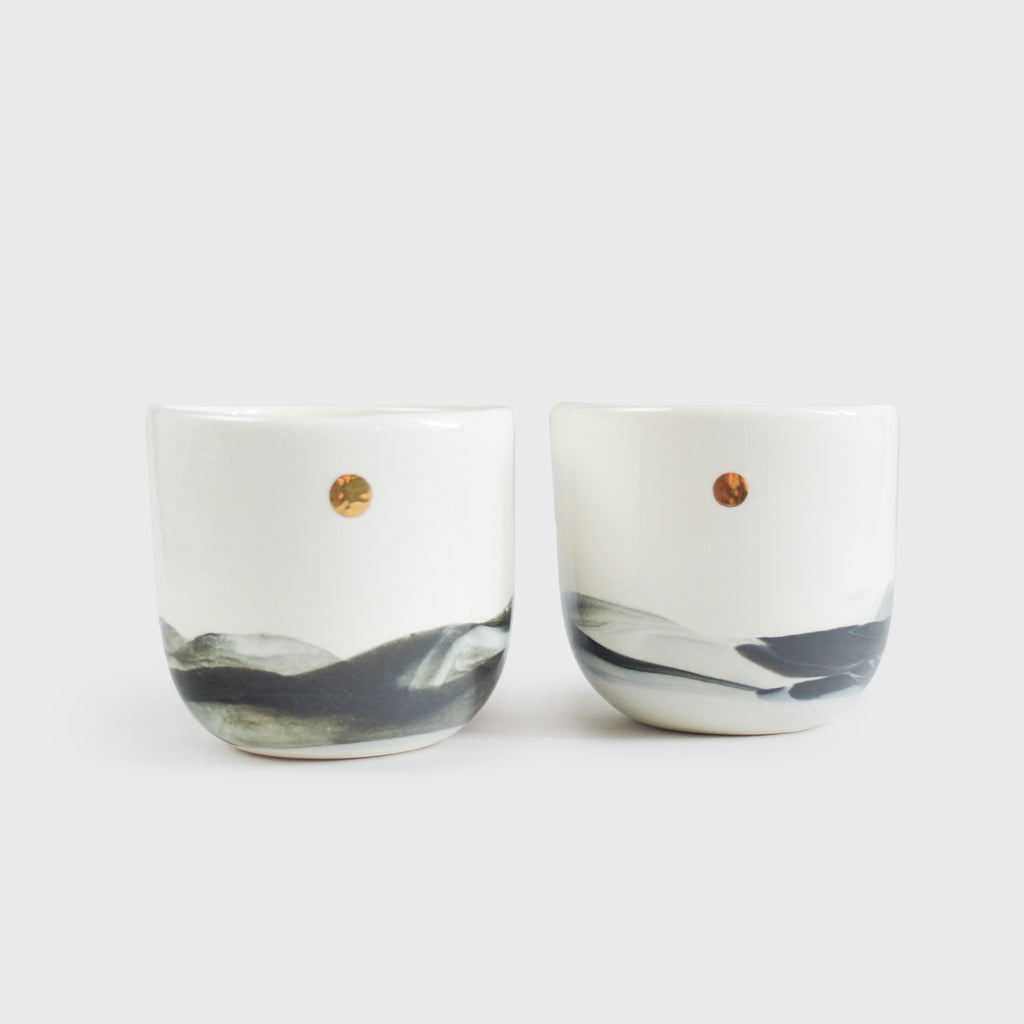 Стакан з мотивавами пейзажу, натхненний спогляданням природи у різні пори року. Розроблений для подачі щоденних напоїв. Посуд виготовлений з міцного матеріалу - порцеляни. Має сонце, розписане справжнім золотом.