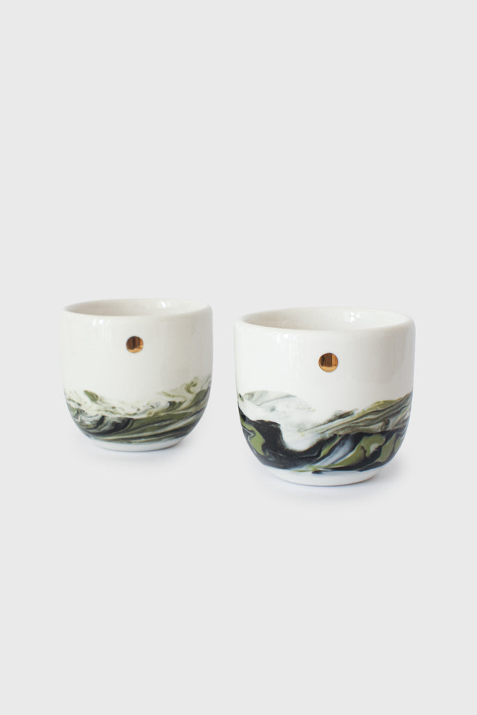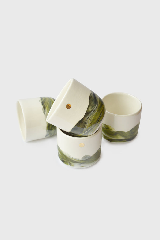 Стакан з мотивавами пейзажу, натхненний спогляданням природи у різні пори року. Розроблений для подачі щоденних напоїв. Посуд виготовлений з міцного матеріалу - порцеляни. Має сонце, розписане справжнім золотом.