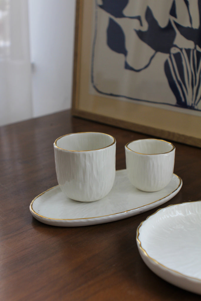 Стакан міні розроблений для подачі кави маленьких поцій, як флет вайт, капучино. Посуд виготовлений з міцного матеріалу - порцеляни. Кожен виріб має різьблену вручну рельєфну поверхню та розписаний золотий бортик.